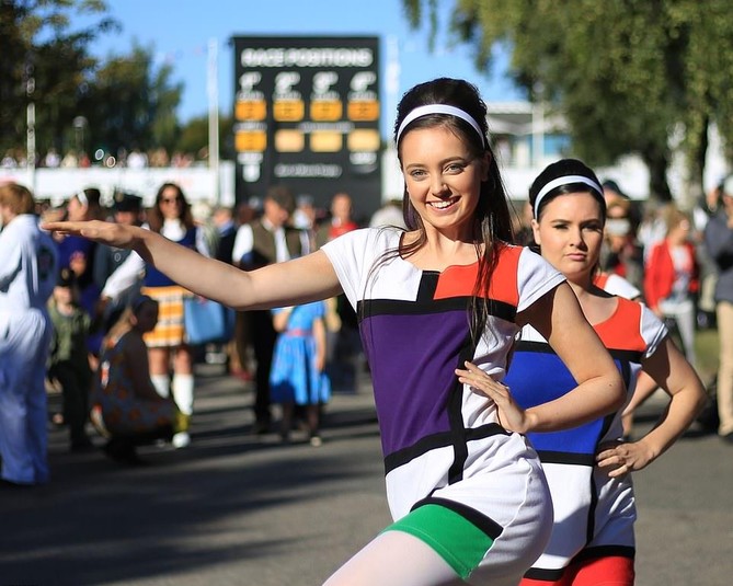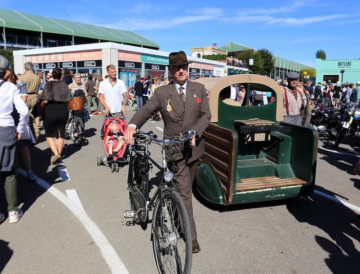 Около 150 тысяч поклонников ретро-моды посетили фестиваль и историческую гоночную трассу близ Чичестера в Западном Сассексе.