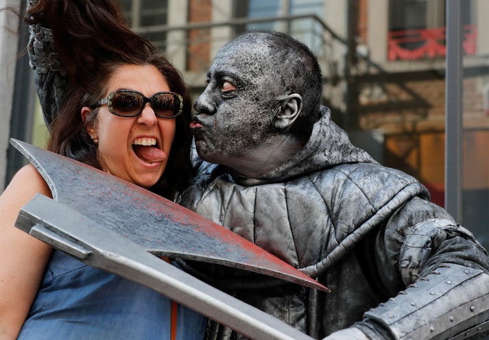 Живые статуи — распространенное зрелище во многих городах, но редко можно увидеть столь разнообразную гамму этой своеобразной формы уличного искусства, для которого исполнители должны оставаться неподвижными в течение долгого периода времени, чтобы создать желаемую иллюзию.