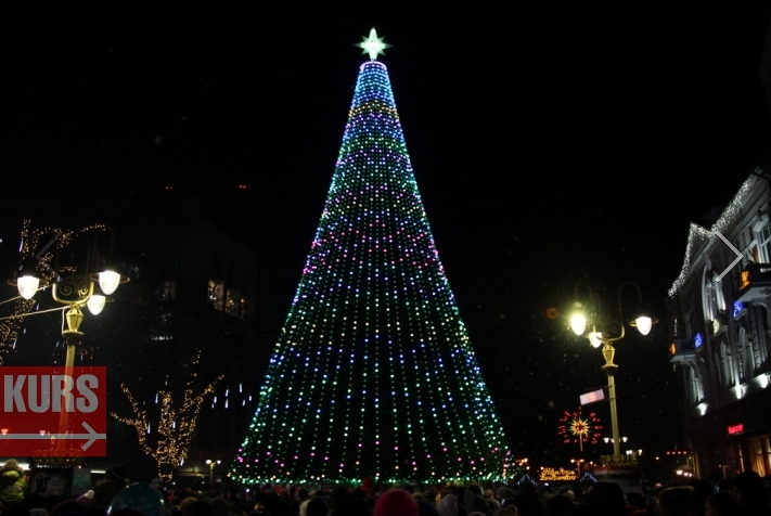 На Вечевой площади в Ивано-Франковске открыли новогоднюю елку.