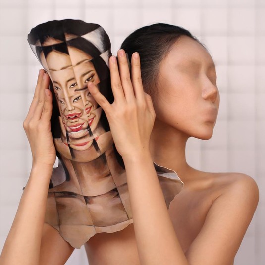 Художница превращает свое лицо на полотно, чтобы создавать фантастические оптические иллюзии