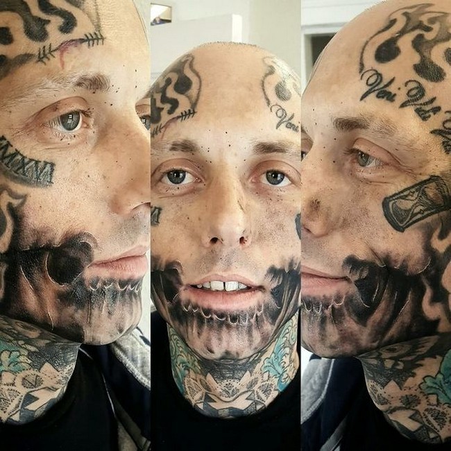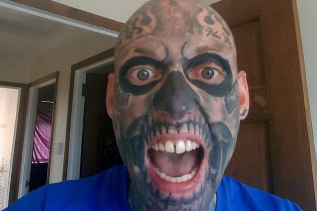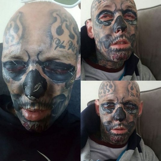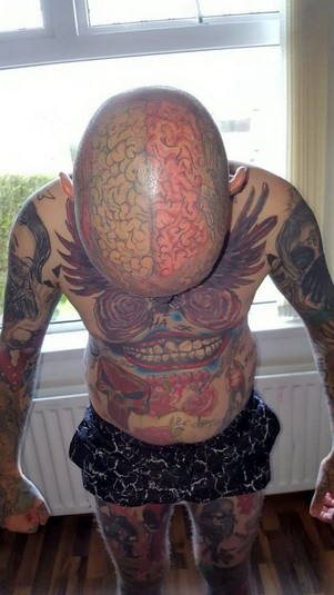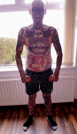 Свою первую татуировку ирландец Крис набил в возрасте 16 лет, и ему настолько понравился результат, что к 30 годам его тело и лицо покрывают уже 600 тату, на которые он спустил 28000 фунтов (36 000 долларов). На этом Крис останавливаться не планирует - он мечтает забить все чистые участки кожи, включая глазные яблоки, пенис и пятки.