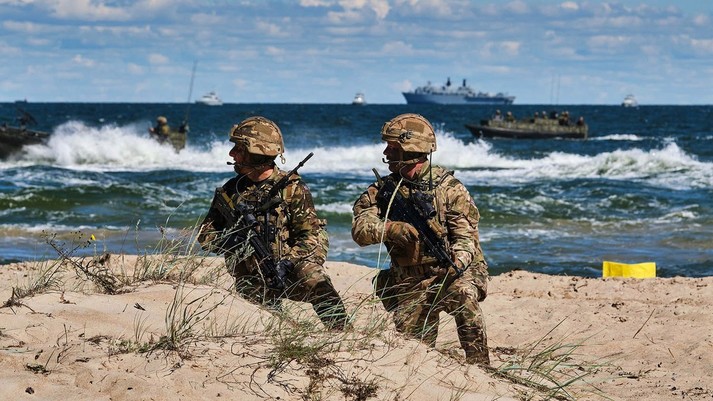Коммандос Королевского флота «освободили» остров в Эстонии во время учений НАТО, в ходе которых они готовились дать отпор опасному российскому вторжению. Целевая группа во главе с британским флагманом HMS Albion переместилась на пару сотен миль вокруг побережья на остров Сааремаа.