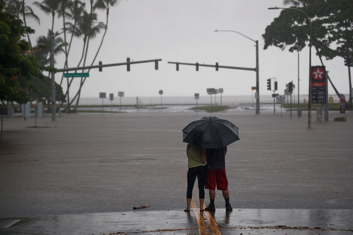 Несмотря на ослабление, шторм продолжает оставаться опасным для Гавайских островов из-за проливных дождей, которые он принес.