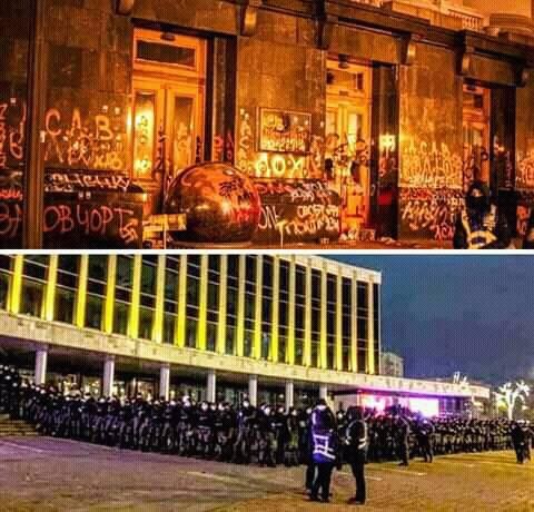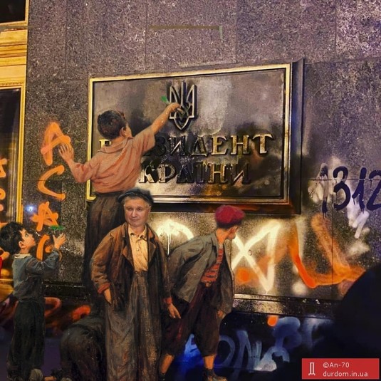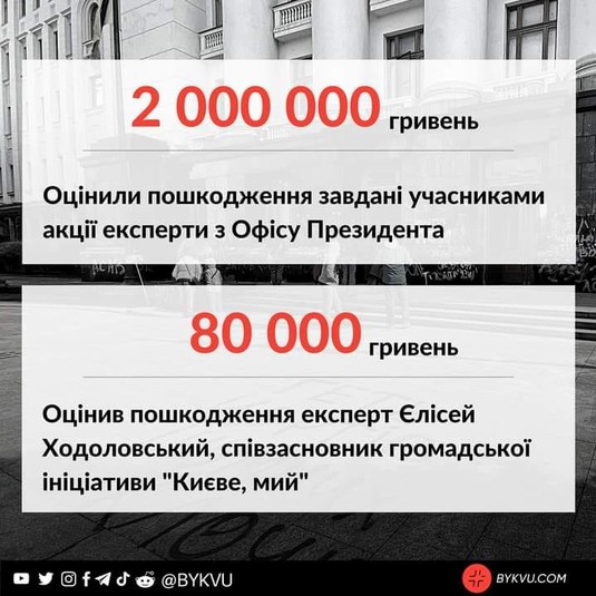 Действия же активистов, которые во время акции разрисовали фасад здания, жгли пиротехнику и выбили стекло в дверях Офиса президента, до сих пор живо обсуждают в соцсетях.
