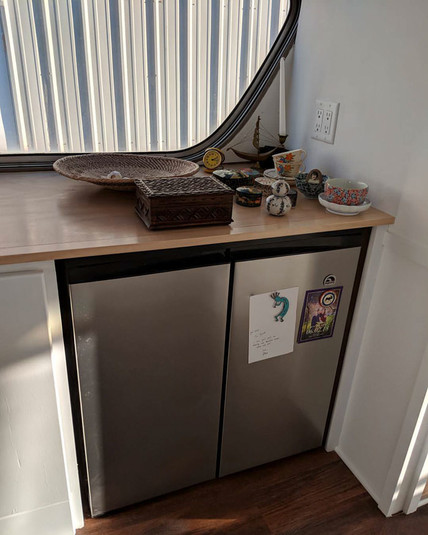 Свой нетрадиционный подход она объяснила стремлением к экологичному образу жизни. Самой сложной частью оказались столярные, сантехнические и электротехнические работы, для которых ей пришлось привлекать профессионалов. Итогом стало оборудование не только гостиной и спальни, но также кухни и уборной с душем.