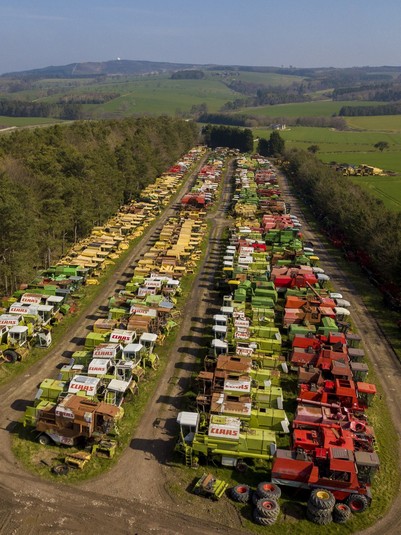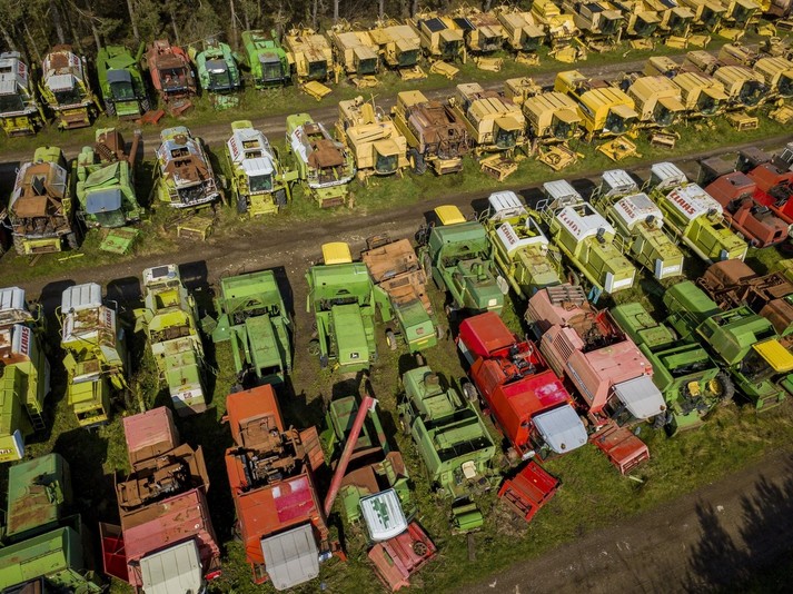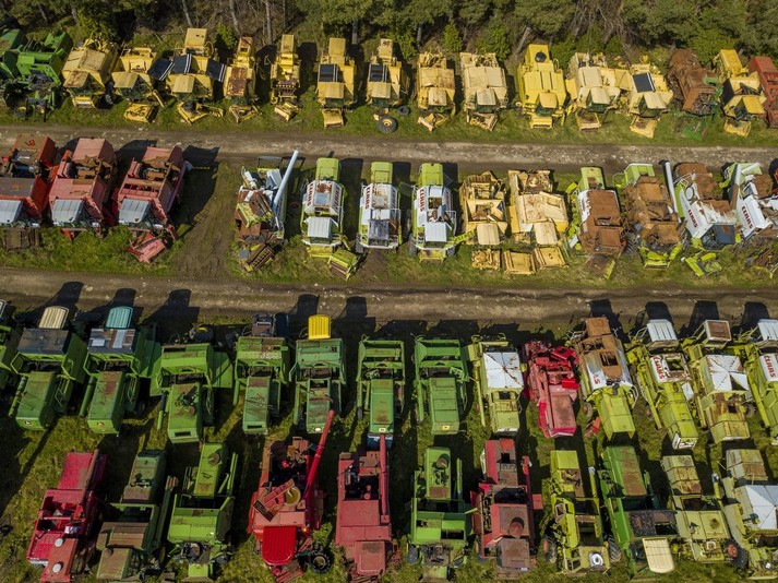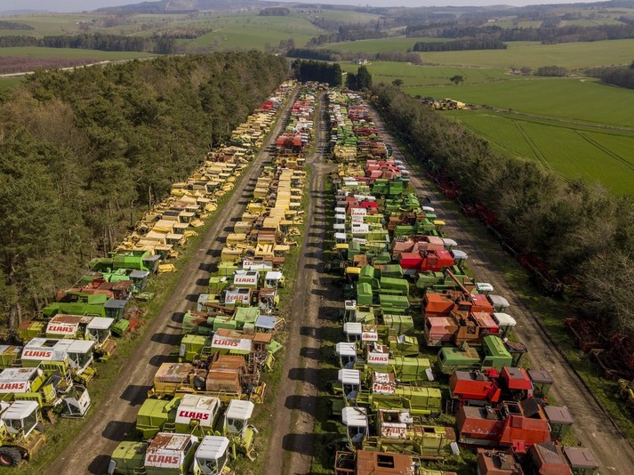 Эти захватывающие кадры, сделанные дроном, показывают британское «кладбище» зерноуборочных комбайнов, где находится 350 сельскохозяйственных машин
