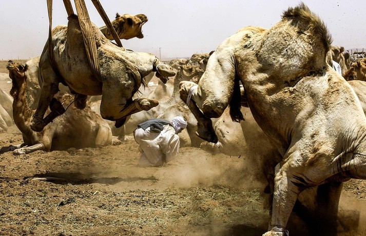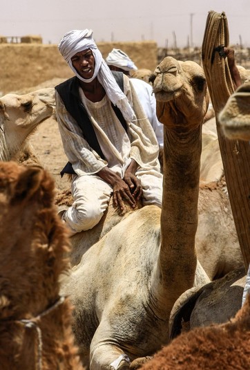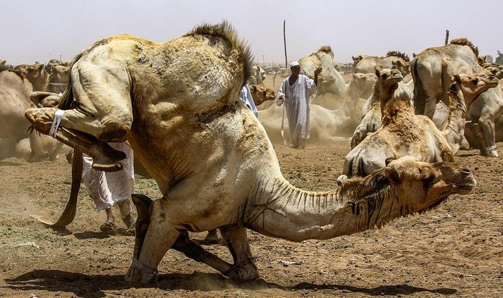 Торговцы со всего Судана ежедневно собираются на рынок верблюдов Эль Молих в Омдурман, чтобы купить или продать верблюдов. Для перевозки животных, торговцы связывают верблюдов и используют мобильный погрузчик, чтобы поднять их в кузов грузовика.