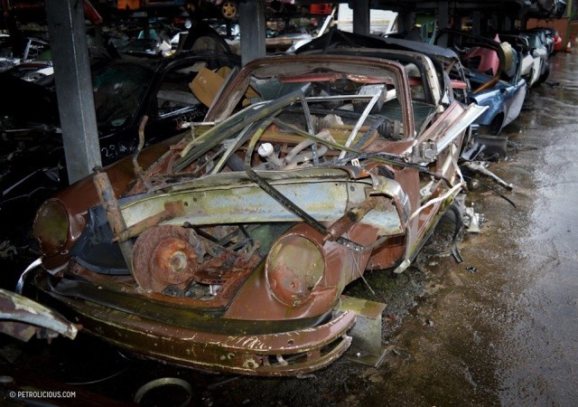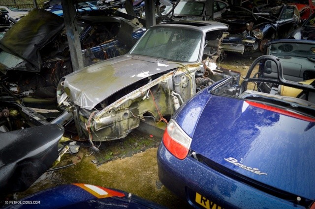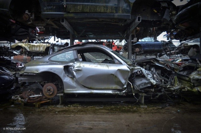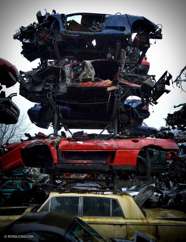 Среди них можно увидеть спорткары Ferrari, Pininfarina, Lotus и множество различных Porsche. Все они постепенно отправляются под пресс, а с большинства из них уже были сняты некоторые запчасти на продажу.