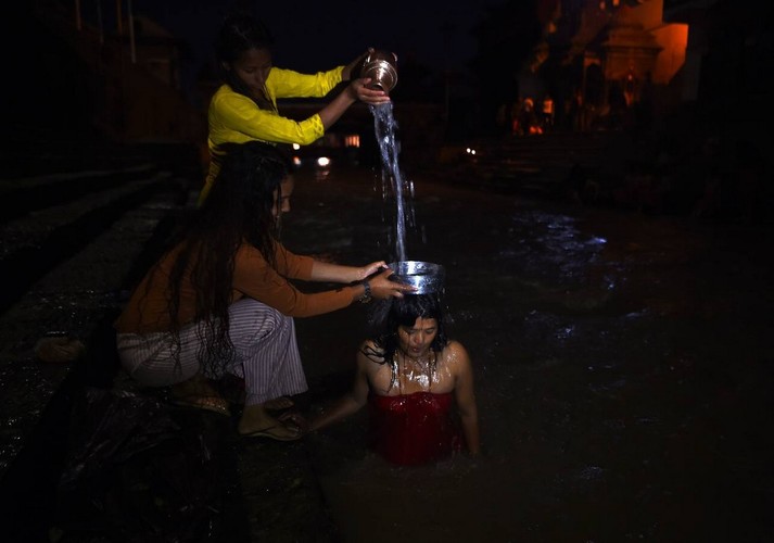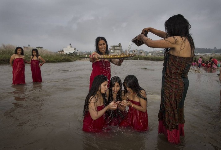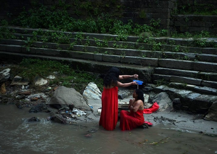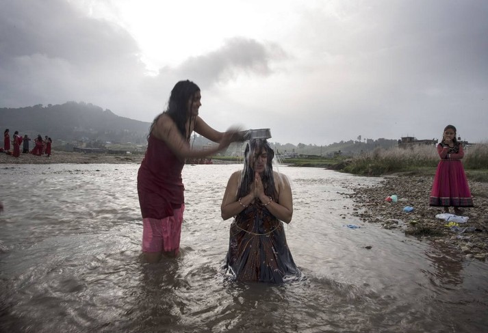 Как выглядит традиционное священное купание непальских женщин в реке Манхара. Фотогалерея