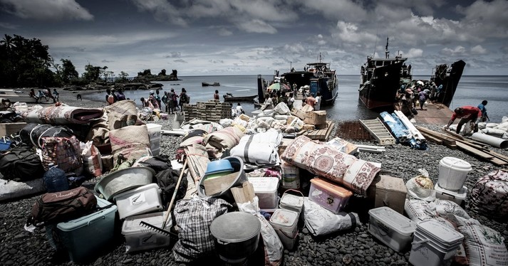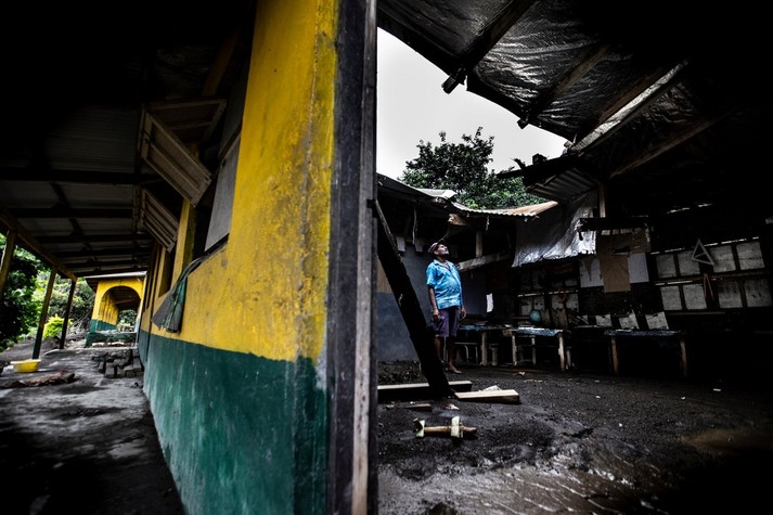 Люди ищут укрытие на соседних островах, строя временные жилища из подручных материалов. Они надеются вернутся домой, но не знают, уцелели их дома или погребены под вулканическим пеплом.