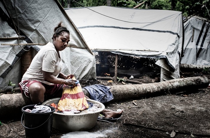 Люди ищут укрытие на соседних островах, строя временные жилища из подручных материалов