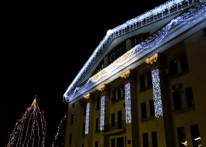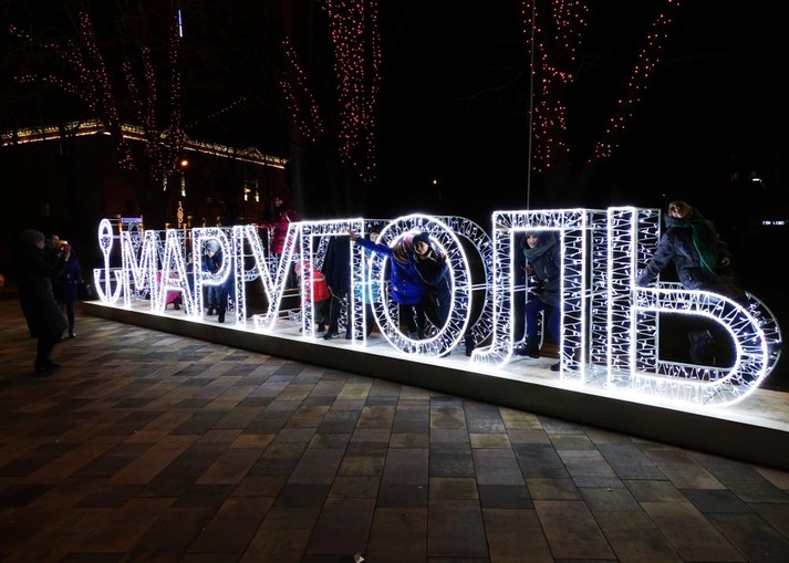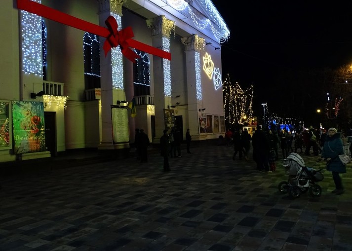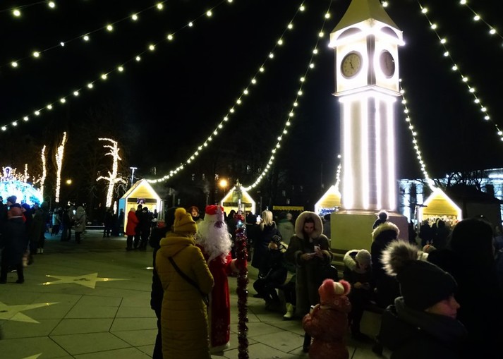 Возле драматического театра установили рождественские палатки с горячей едой и напитками. Местный фотограф сделала снимки праздничного прифронтового города в канун Нового года.