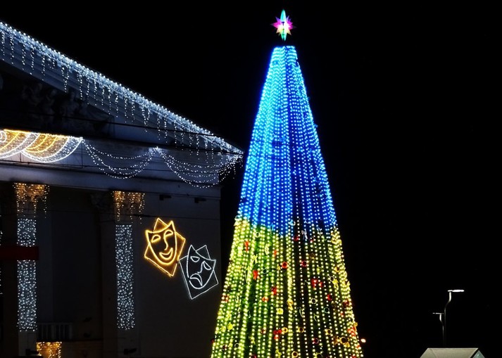 Мариупольская 16-метровая елка установлена на Театральной площади драматического театра. В этом году ей добавили еще больше украшений и игрушек, а гирляндам - дополнительные программы. В световой композиции более 5 тыс. лампочек.