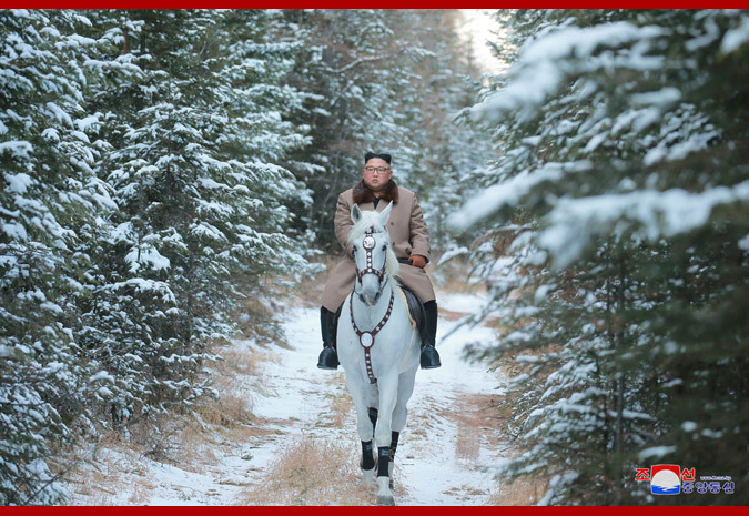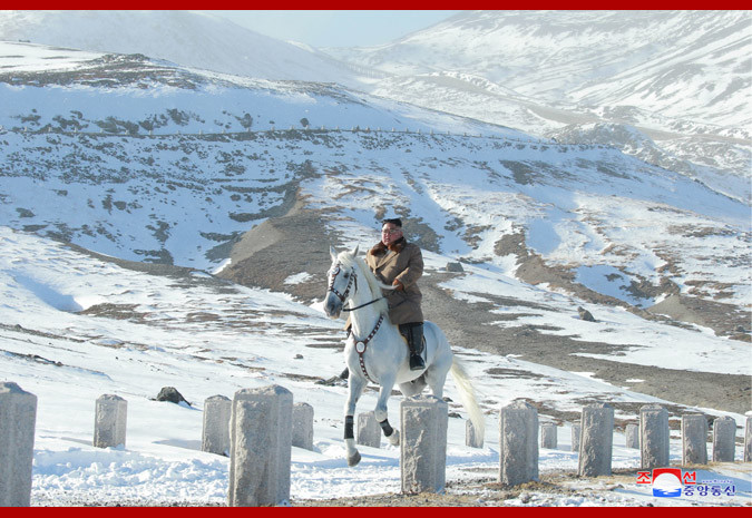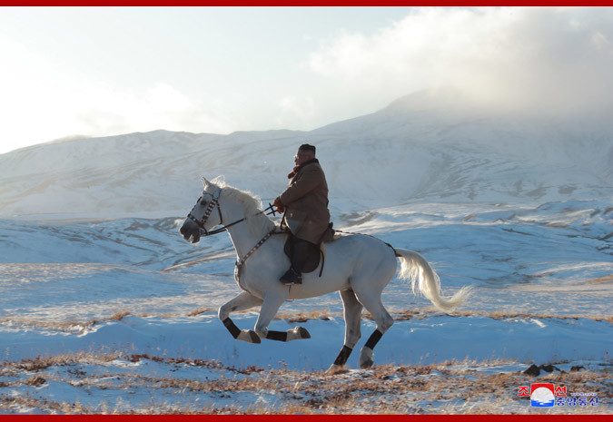 «Он, сидя верхом на коне на вершине горы Пэкту, с глубокими эмоциями вспомнил путь тяжелой борьбы, который он прошел для великого дела строительства самой могущественной страны с верой и волей», − говорится в сообщении.