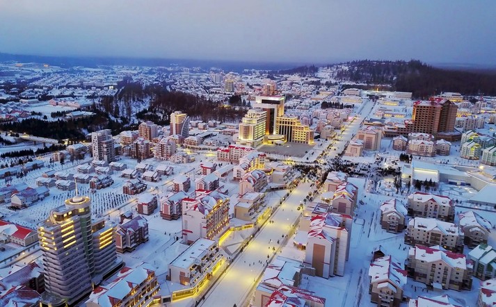 В Северной Корее торжественно открыли новый город Самчжиен с жилыми домами, гостиницами, горнолыжной трассой, медицинскими, культурными заведениями и ТЦ, рассчитанный на проживание 4000 семей.