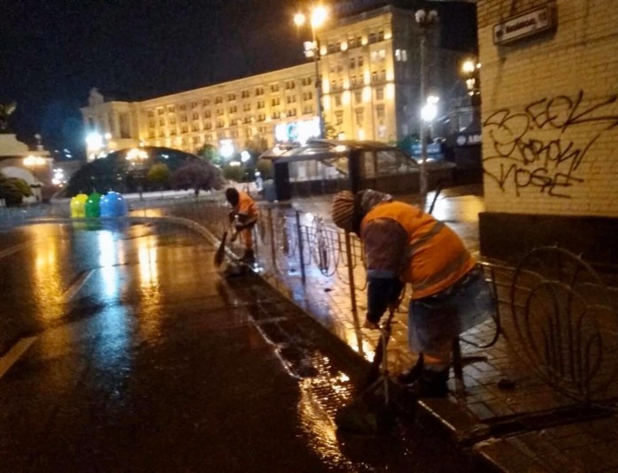 «В течение ночи продолжили активную работу по очистке решеток ливнестоков. Ведь дождем на них нанесло новый мусор», - сообщили в КГГА.
