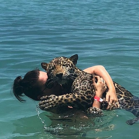 Купание туристов с ягуарами в Карибском море. Трогательные фото