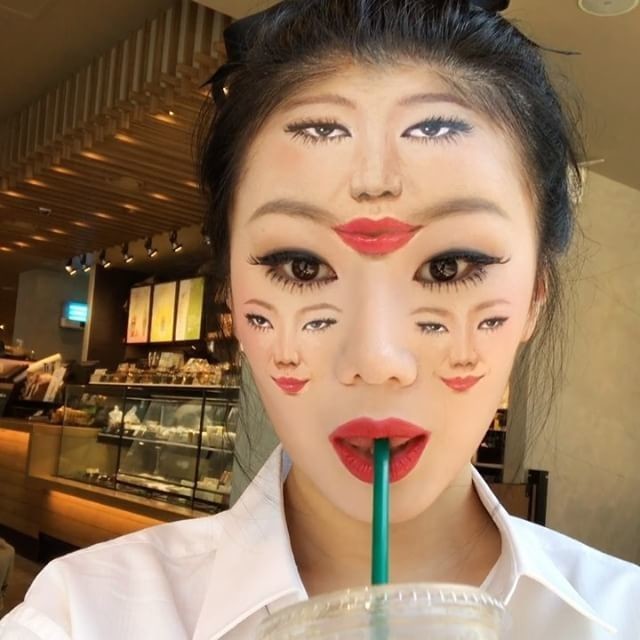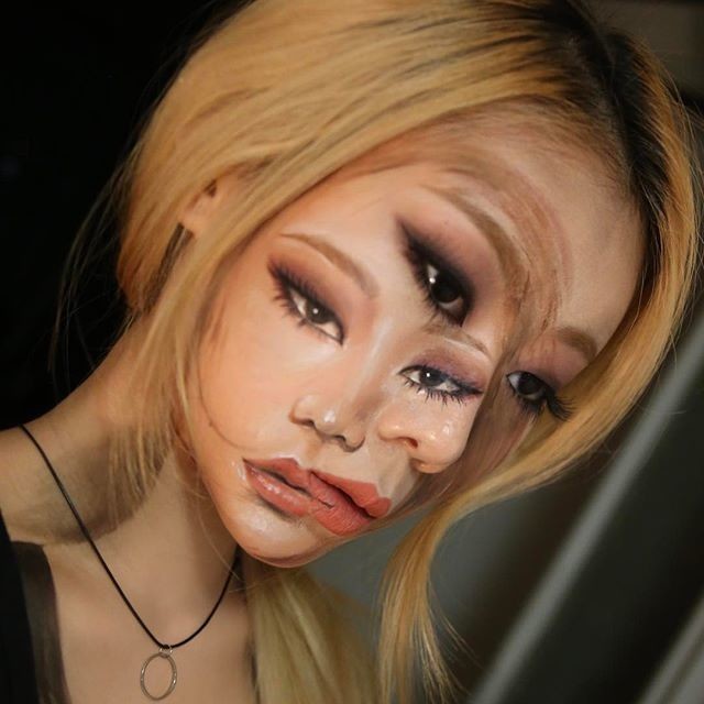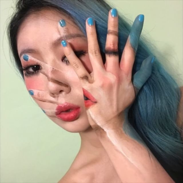 Визажист Дайн Юн из Кореи стала известна в Instagram благодаря своему таланту в области создания оптических иллюзий. Холстом для этой девушки служит ее собственное лицо, на которое она наносит рисунки, похожие на компьютерные спецэффекты.