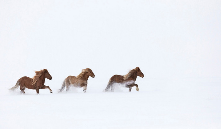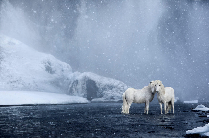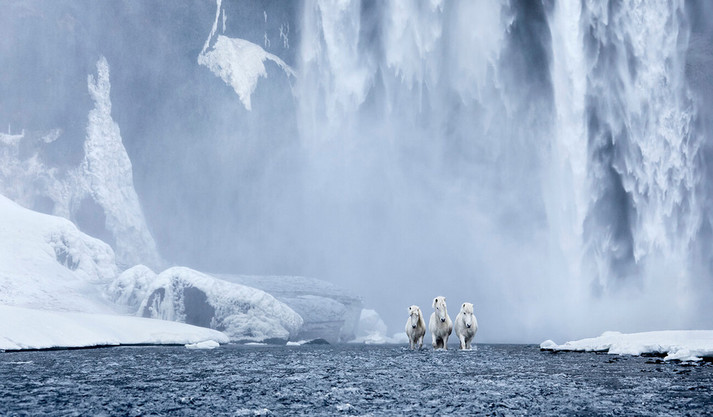 Серия фотографий лошадей, снятых на сказочном фоне исландских водопадов, пляжей с чёрным песком и снежных тундр, где на передний план выступает родство благородных и выносливых животных с суровым ландшафтом.