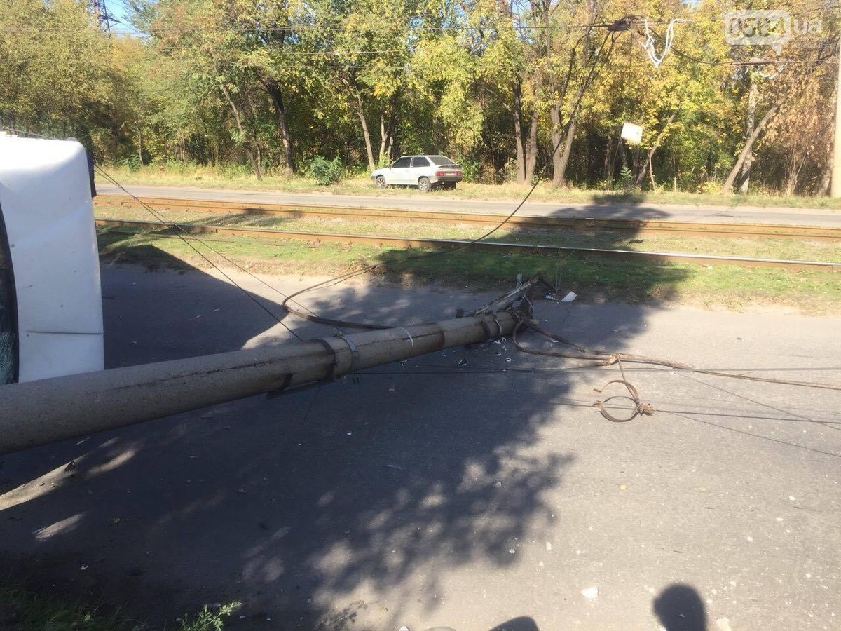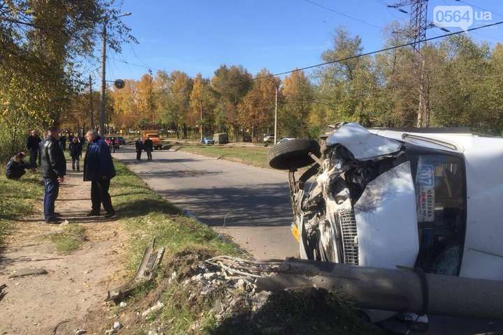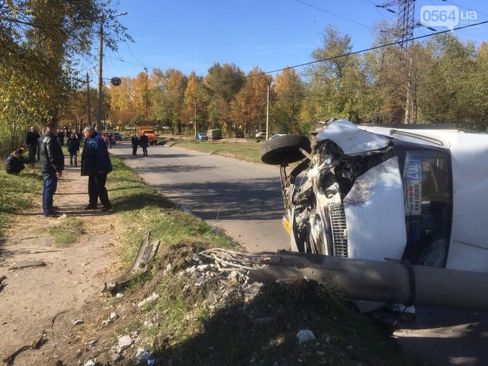 В Кривом Роге маршрутка с пассажирами протаранила электроопору и перевернулась.