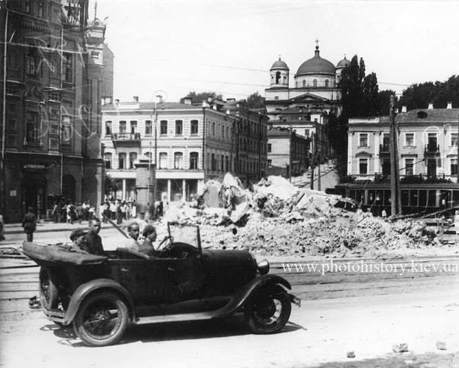Начиная с 1930-х в Киеве начались Сталинские репрессии. Массовые казни осуществлялись на территории Быковни. Коммунисты, исповедовавшие воинствующий атеизм, разрушили большую часть киевских уникальных храмов: Михайловский Златоверхий монастырь, Трехсвятительская церковь, церковь Богородицы Пирогощей, Богоявленский и Военный Никольский соборы, Воскресенскую и Петропавловскую церковь на Подоле, Благовещенскую церковь-колокольню Кирилловского монастыря, храмы в стиле классицизма Николая Доброго, Рождества, св. Ольги и тому подобное.