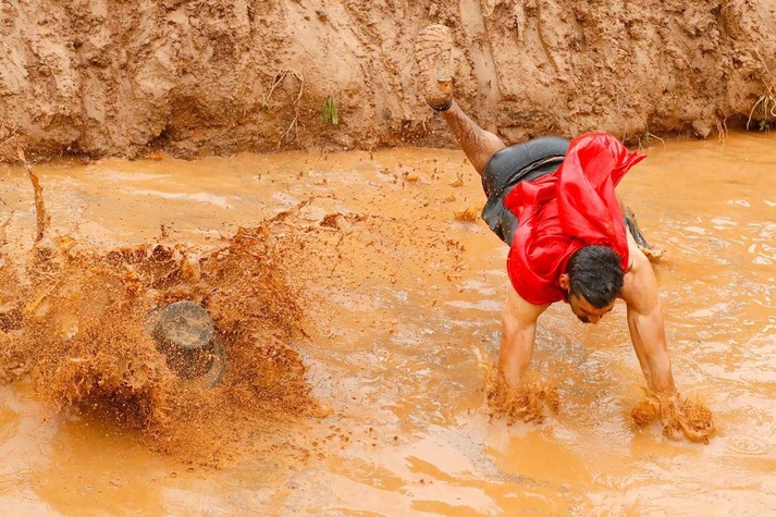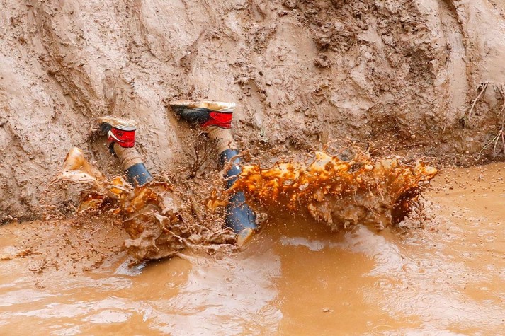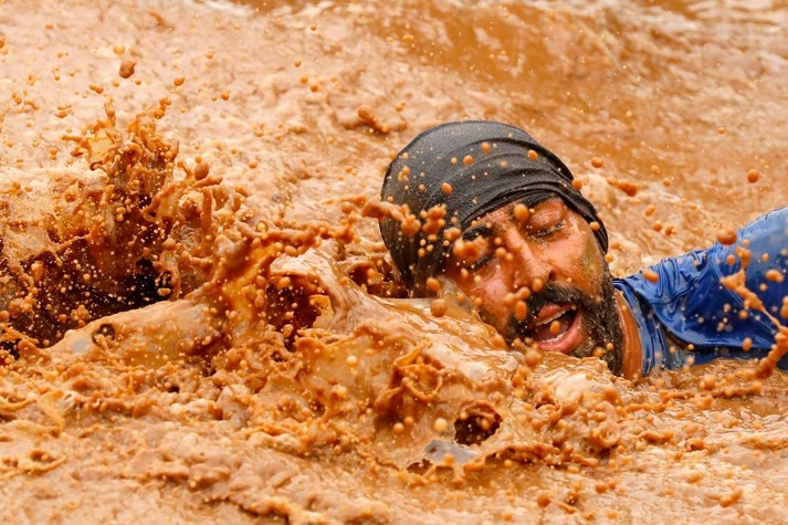 Участникам предстояло преодолеть 13-километровую трассу с более чем 20-ю препятствиями по воде и грязи
