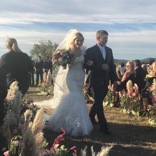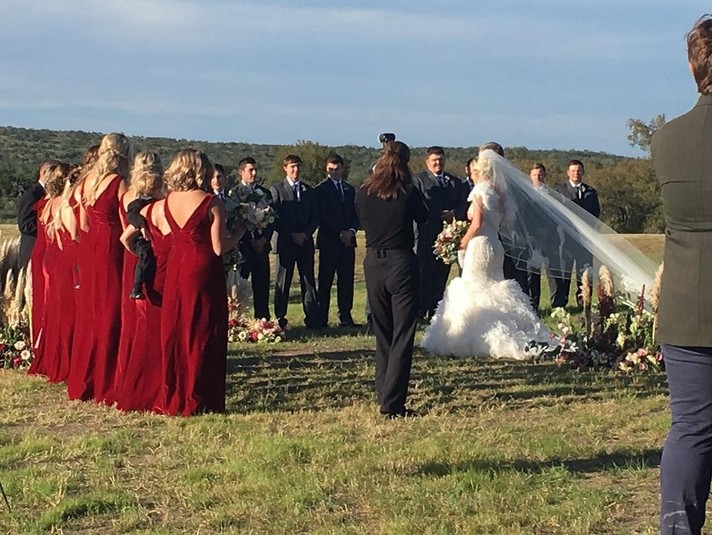Старшекурсники университета Сэма Хьюстона Уилл Байлер и Бейли Акерман из Техаса поженились в минувшую субботу на семейном ранчо Уилла. Церемония прошла в кругу друзей и родственников.