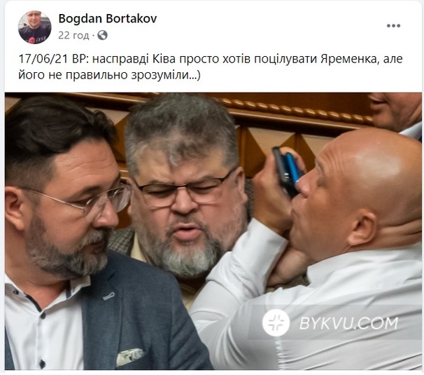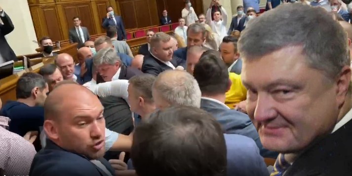 В Верховной Раде на пленарном заседании 17 июня произошла драка между депутатами «Слуги Народа» и «Оппозиционной платформы – За жизнь». Представитель ОПЗЖ Илья Кива и «слуга» Николай Тищенко начали толкать друг друга. Их пытались разнять другие депутаты.