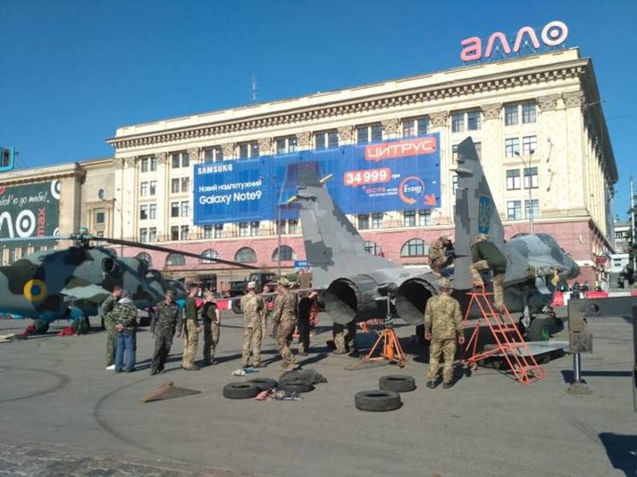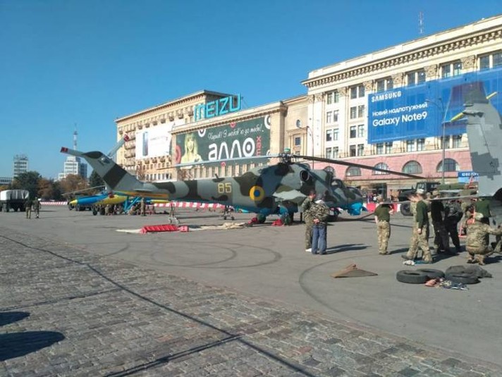 Как передает «Depo.Харьков», сегодня, 11 октября, военные доставили на площадь наземную колесную гусеничную технику, самолеты, вертолеты и артиллерийские системы.
