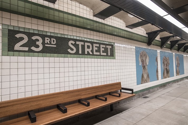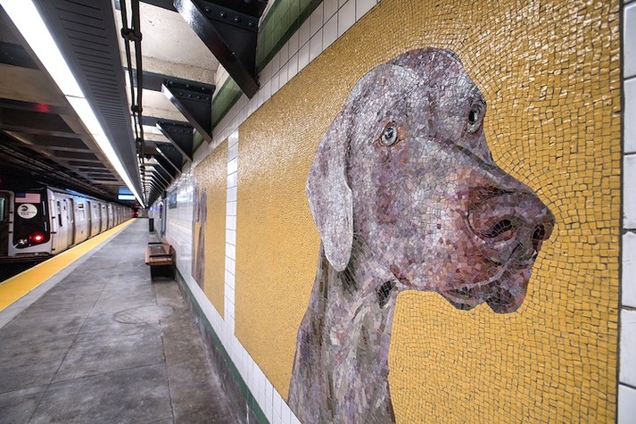 На станции нью-йоркского метро «23rd Street» появились мозаики с изображением собак породы веймарская легавая известного фотографа Уильяма Уэгмана.