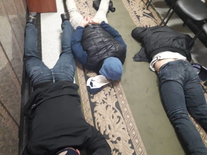 По информации одесского издания «Думская», полицейские задержали в облавтодоре владельца и директора строительной компании «Дорлидер» Араика Амирханяна и восемь нанятых им в Киеве боевиков. У них изъяли ножи и травматические пистолеты.