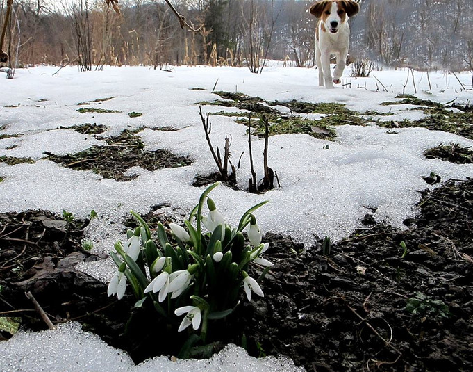 По словам фотографа, снимки он делал в лесу в городе Косов. Там уже появились подснежники, также цветут примулы и зимовник.