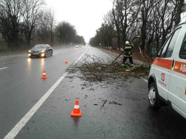 «24 февраля в результате осложнения погодных условий (сильного порыва ветра) с автодорог области бойцы ГСЧС убирают поваленные ветром деревья, препятствующие движению автотранспорта. Случаи падения деревьев зафиксированы в Литинском, Немировском, Липовецком и в Виннице», - сказано в сообщении.