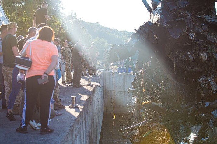 Первый МИ-24П был поднят на поверхность в начале апреля. Правда, теперь нацгвардейцы смогли доставить на берег и тело двух пилотов.