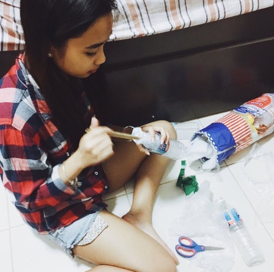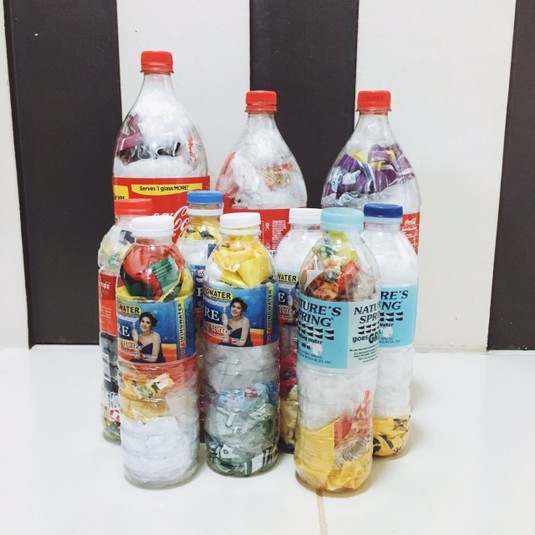 По ее мнению, можно наполнять измельченным пластиком и полиэтиленом обычные пластиковые бутылки. Затем при помощи строительного раствора можно использовать такие бутылки в качестве обычных кирпичей.