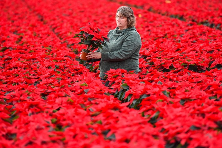 После месяцев напряженной работы, теплица площадью 50.000 квадратных футов превращается в живое одеяло праздничного красного цвета. Затем растения поступают в магазины, где их продают по 10 фунтов стерлингов. За праздничные дни раскупают более 7000 пуансеттий.