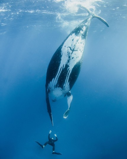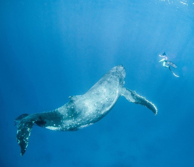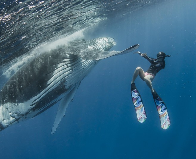 Сиднейский фотограф Дэвид Эдгар (David Edgar) был в экспедиции в королевстве Тонга, расположенной в южной части Тихого океана, где он сфотографировал взаимодействие человека с величественным млекопитающим.
