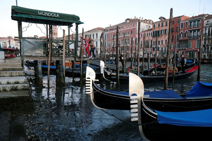 Низкие приливы в Венеции оставили каналы почти сухими — всего через два месяца после сильного наводнения, которое затопило большую часть итальянского города, причинив ущерб более миллиарда евро.