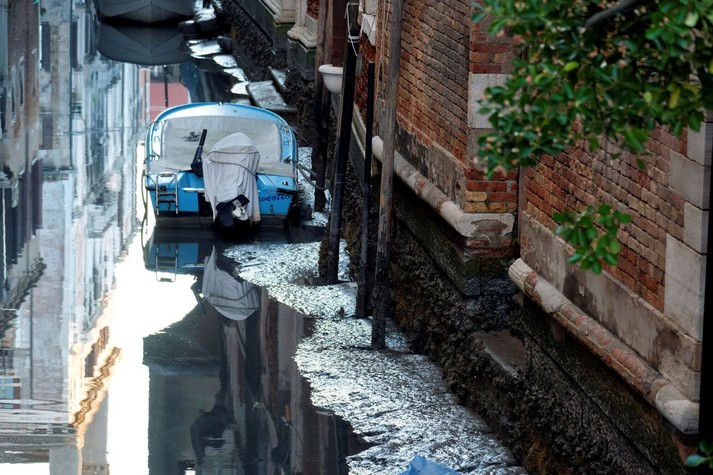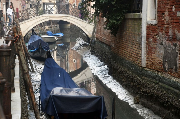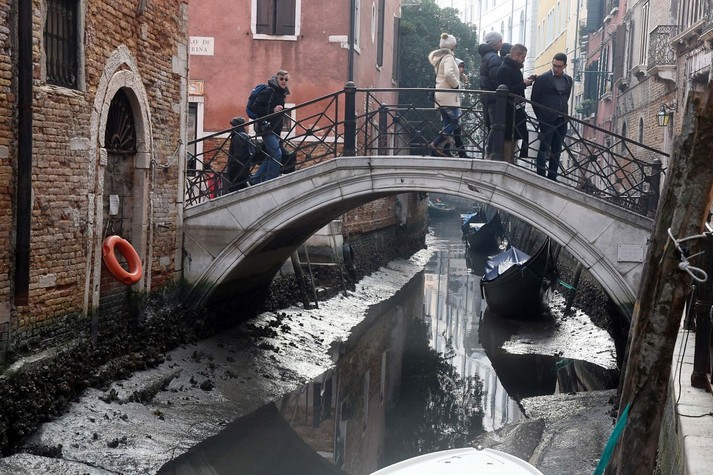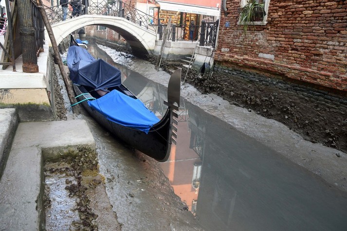 Уровень воды упал на 45 сантиметров ниже уровня моря, что делает невозможной навигацию по некоторым водным путям Венеции.