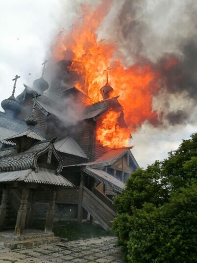 Русские 4 июня в очередной раз обстреляли территорию Святогорской лавры, попав во Всехсвятский скит. В результате возник пожар, уничтоживший деревянную церковь до основания, от памятника остался только фундамент. Соответствующее видео появилось в сети.