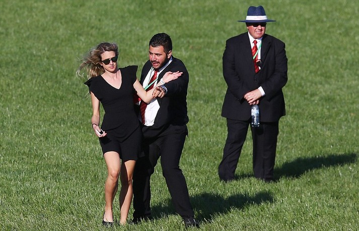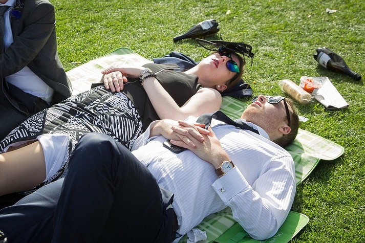 По традиции, пришедшие на ипподром дамы, демонстрировали свои гламурные наряды, шляпки и яркий макияж. Но обилие доступного алкоголя сделало свое дело, некоторые леди к концу вечера остались лежать на травке среди пустых бутылок и мусора.