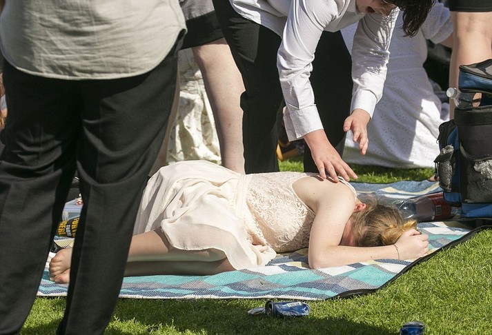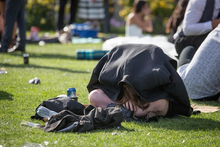 Обилие доступного алкоголя сделало свое дело, некоторые леди к концу вечера остались лежать на травке среди пустых бутылок и мусора