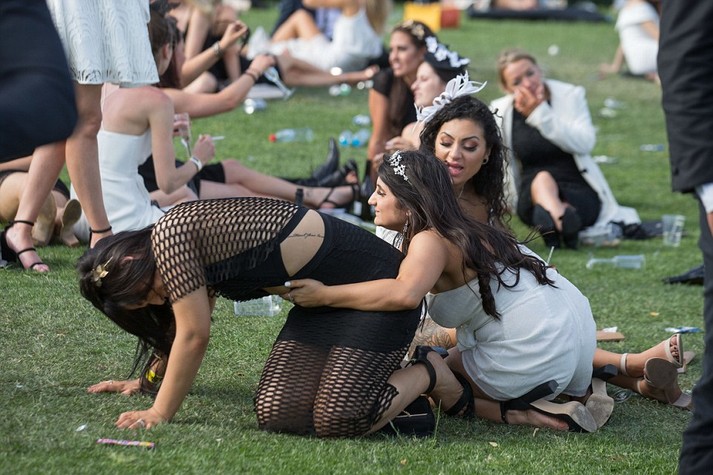 Очень много пьяных леди и алкоголя. Как австралийские дамы развлекались на ипподроме
