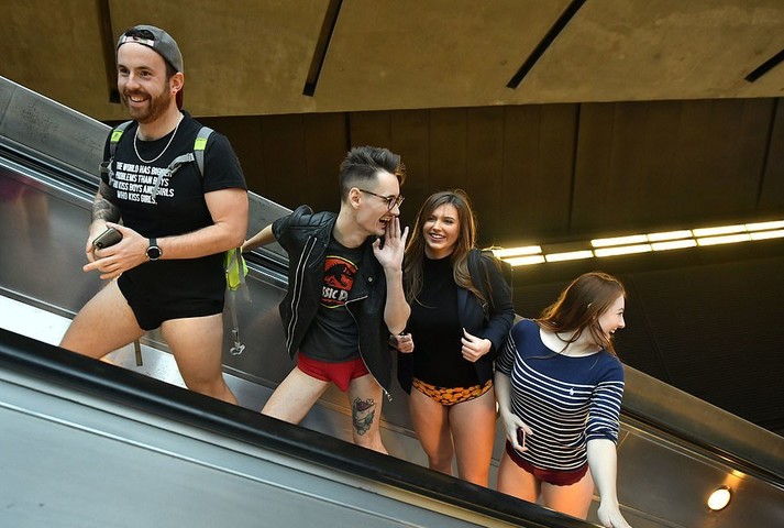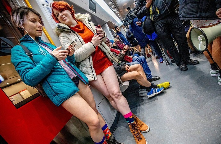 В воскресенье по всему миру прошла 18-я акция «В метро без штанов». Впервые этот флешмоб прошел в Нью-Йорке в 2002 году, в нем приняли участие всего 7 человек. Акция распространилась на линии общественного транспорта от Сан-Франциско до Иерусалима.
