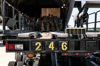 «Военнослужащие Воздушных Сил ВС США на базе Воздушных Сил США Доверие, штат Делавер, загружают пакеты направляемых в Украину боеприпасов на C-17 Globemaster III в рамках миссии безопасности помощи», – говорится в сообщении.