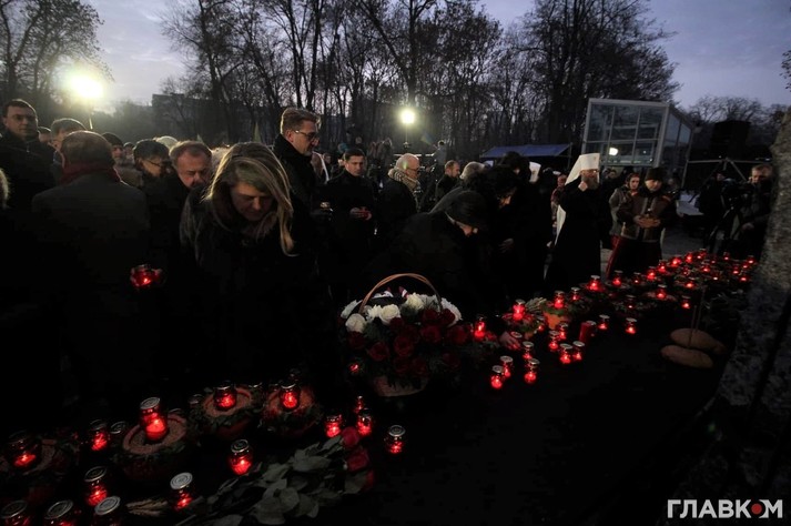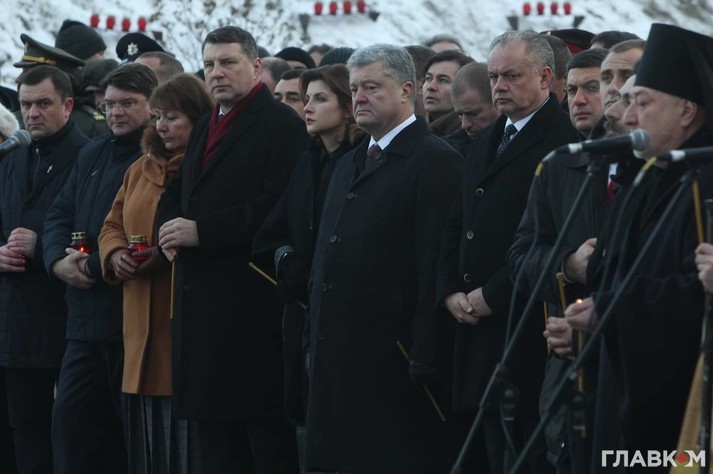 Свечи памяти зажгли президент Петр Порошенко, премьер-министр Владимир Гройсман, спикер Верховной Рады Андрей Парубий.