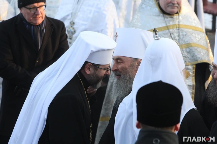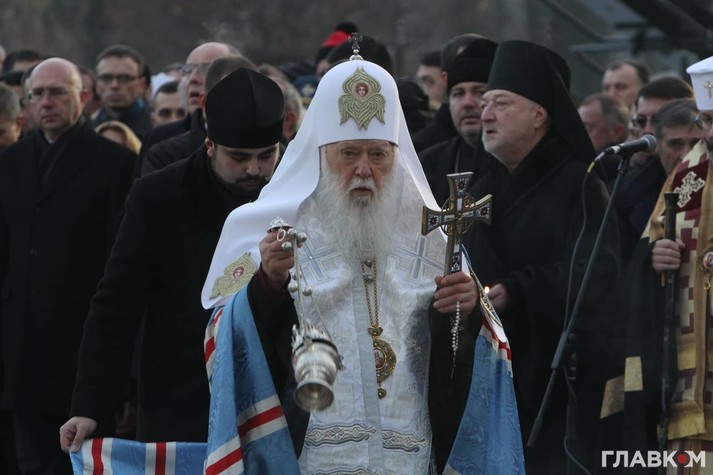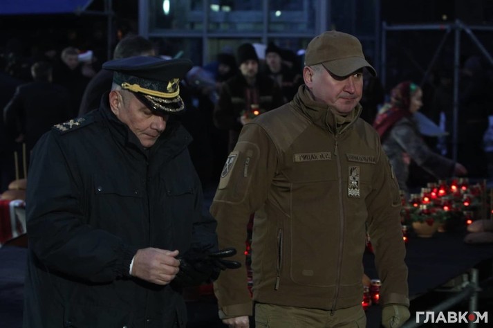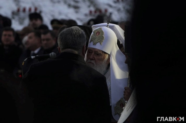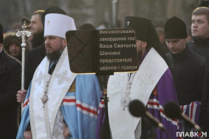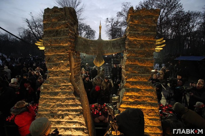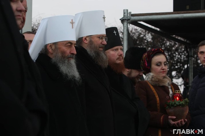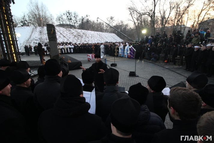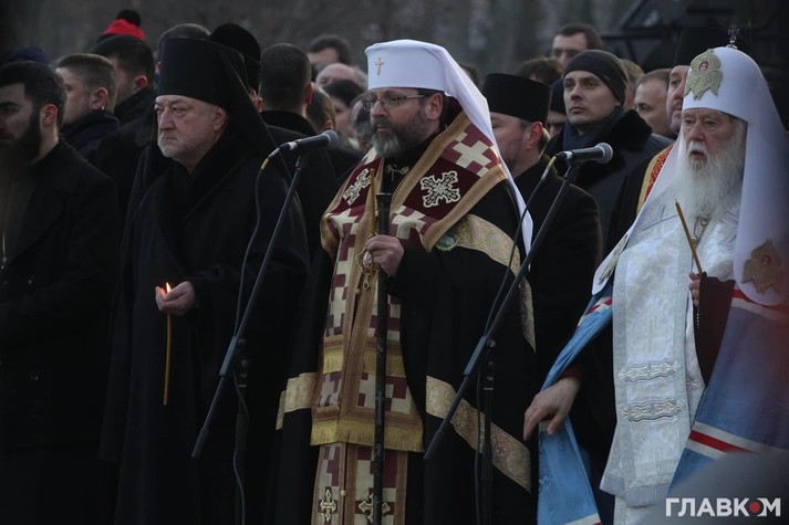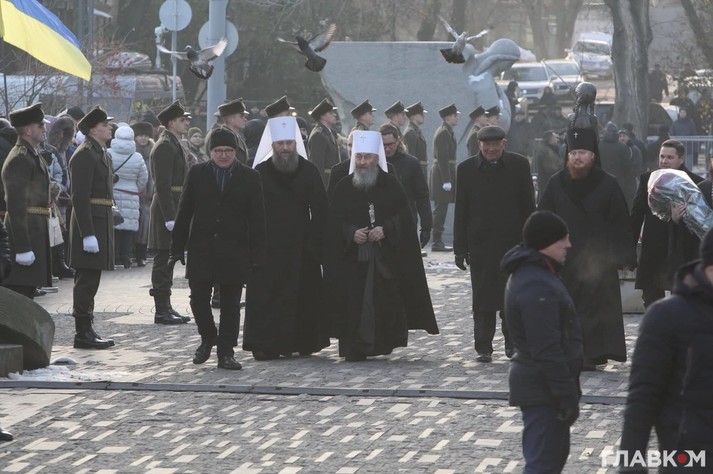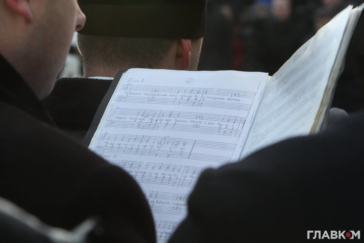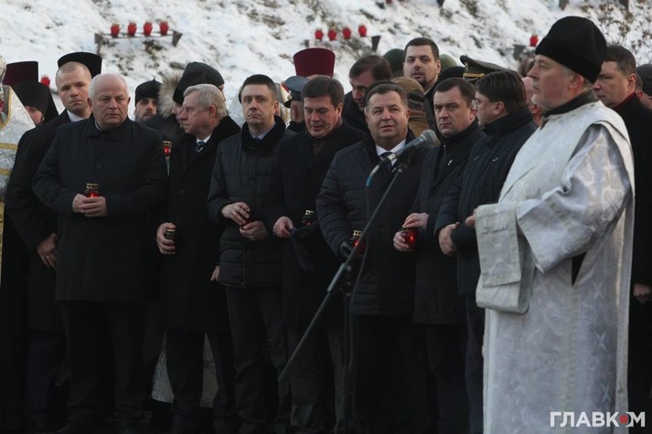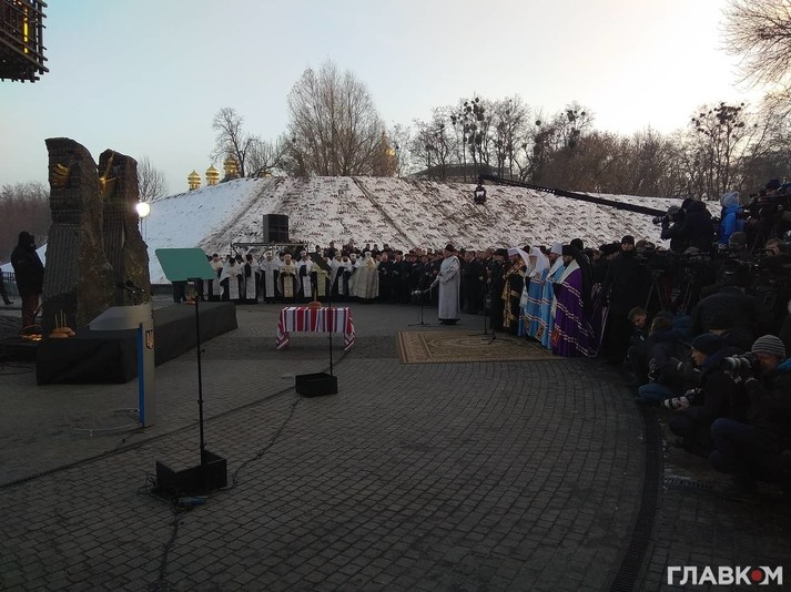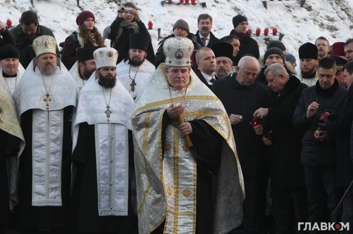 Церемония началась после панихиды по погибшим украинцам. Присутствующие почтили погибших минутой молчания.