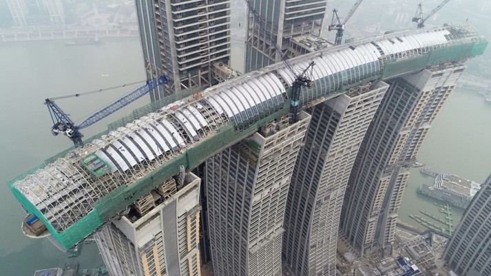 В Китае подходит к концу строительство первого в мире «горизонтального» небоскреба, являющегося частью проекта Raffles City Chongqing. Об этом пишет CNN.