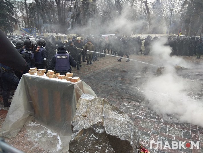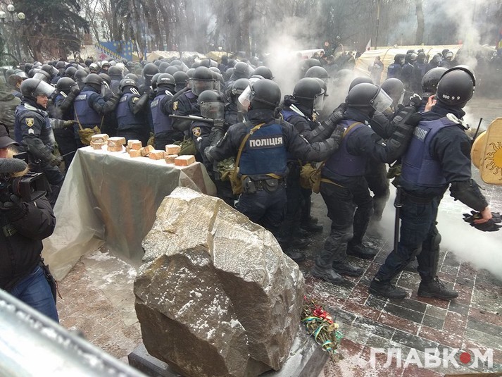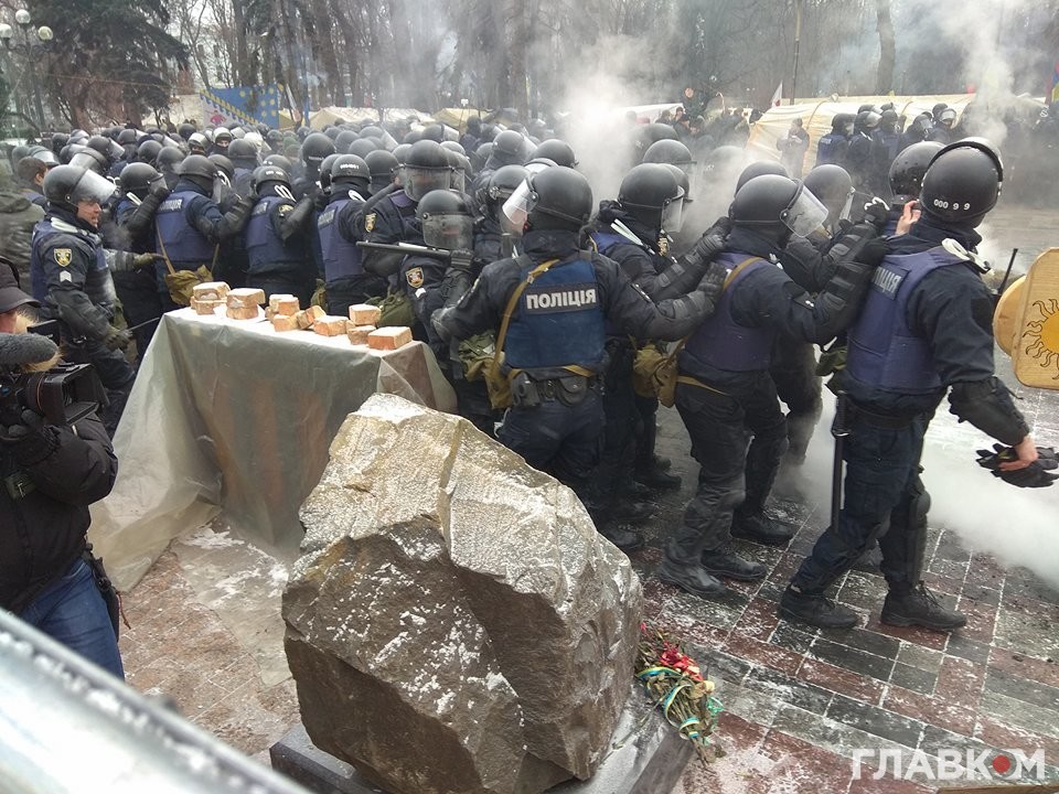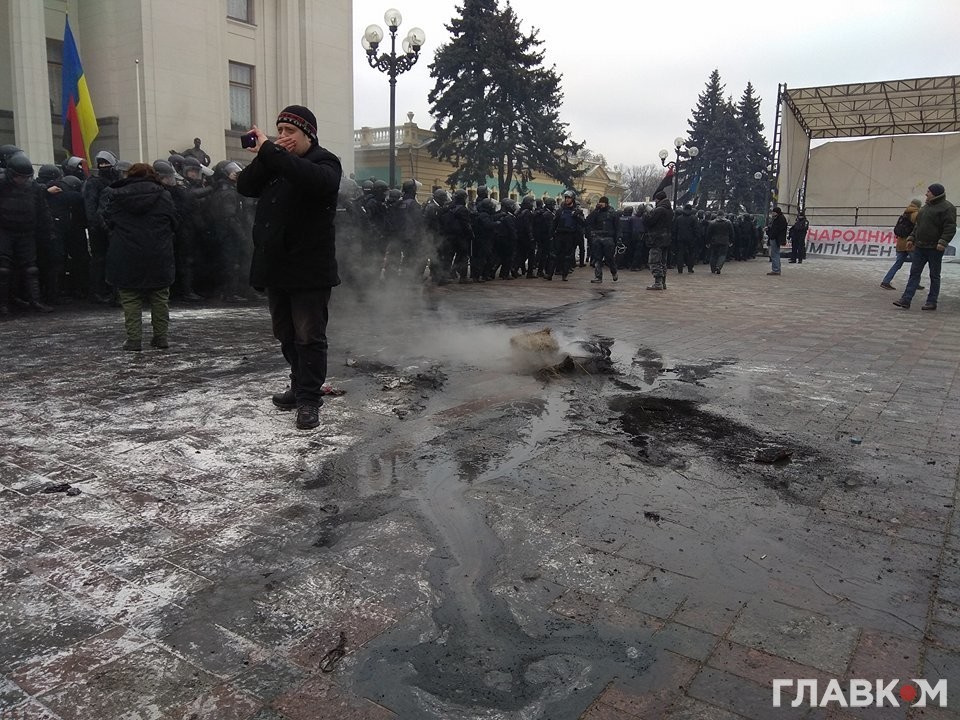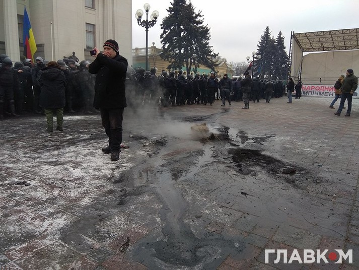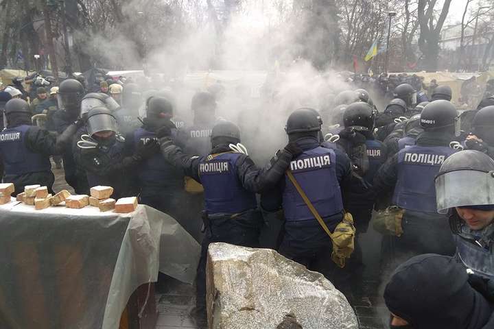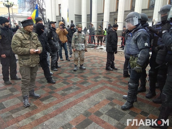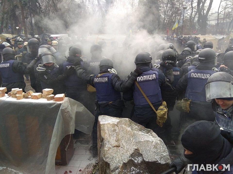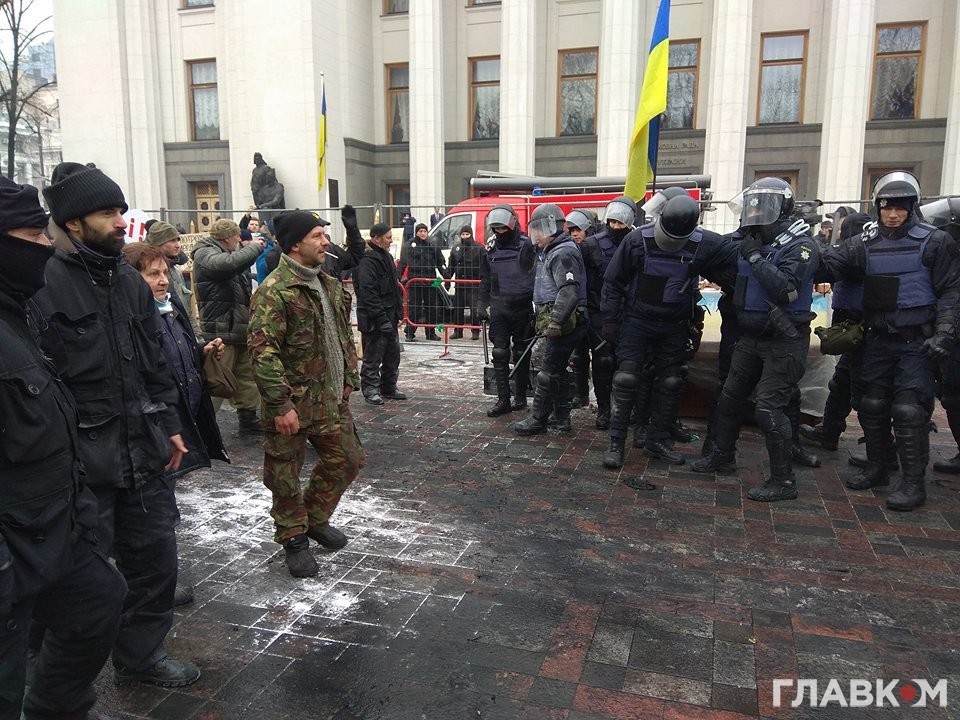 Под Радой, где во вторник, 16 января, на заседании депутаты рассматривают законопроект по Донбассу, около 11 утра произошли столкновения между митингующими и полицией.