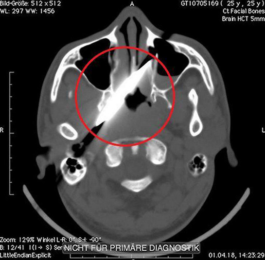 Рентген показал, что нож зашел на 10 см в голову, но не задел ни одной артерии